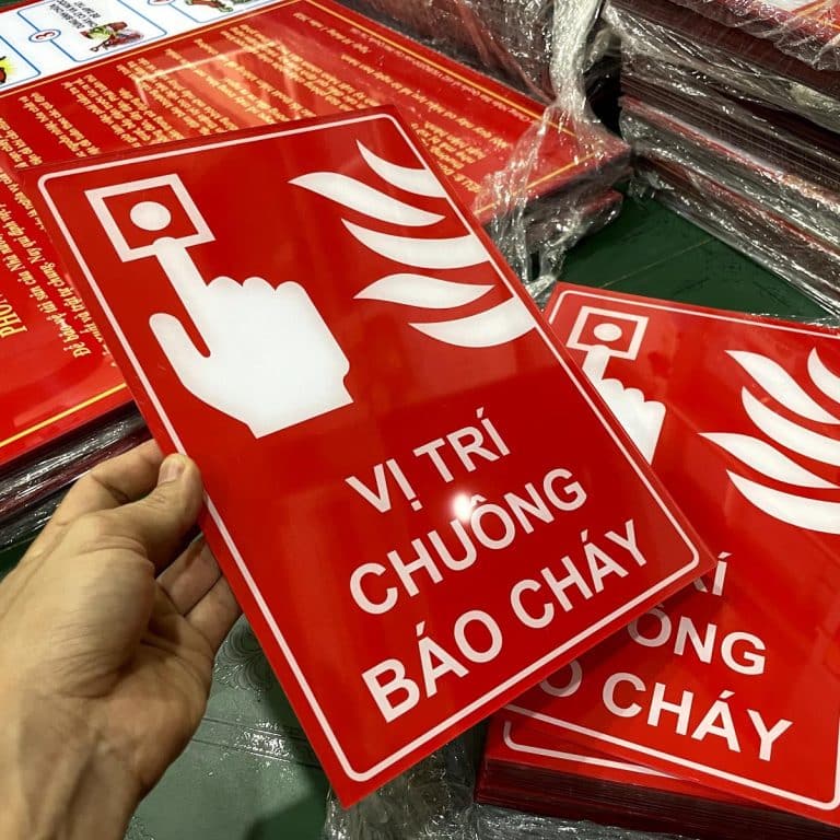 Biển báo vị trí nút nhấn chuông báo cháy khẩn cấp mica chỉ dẫn vị trí lắp đặt nút nhấn kích hoạt chuông báo cháy để báo hiệu khi có sự cố cháy nổ trong khu vực nhất định để người xung quang phát hiện có cháy so tán kịp thời. Đây là giải pháp an toàn phòng cháy hiệu quả trong các khu vực tòa nhà, tầng hầm chung cư hay các nhà máy, kho xưởng sản xuất có lắp đặt hệ thống pccc.