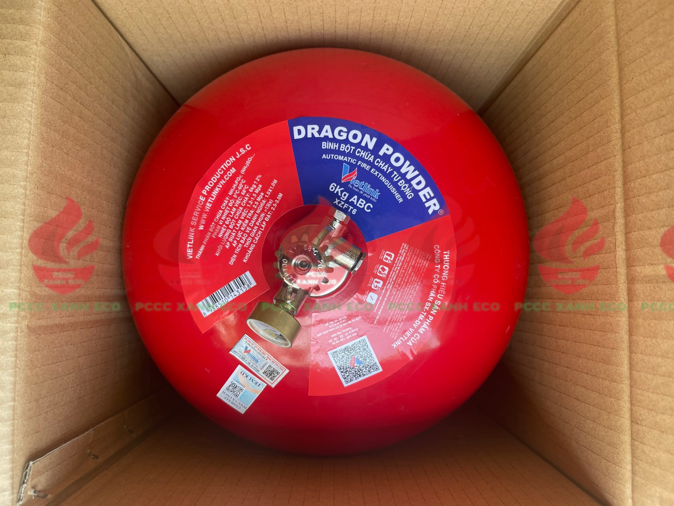 Bình cầu chữa cháy tự động Dragon bột ABC 8kg là một thiết bị PCCC hiệu quả và tiện lợi. Bình cứu hỏa này có khả năng phun chất chữa cháy tự động, có thể treo trên trần nhà hoặc tường ở những nơi có nguy cơ cháy cao, như kho xưởng, nhà bếp, cây xăng, trạm biến áp… Khi nhiệt độ tại vị trí bình treo vượt quá 62 độ C, bình cứu hỏa sẽ tự động phát nổ và phun bột ABC ra xung quanh, dập tắt ngọn lửa nhanh chóng. Bột ABC có thể chữa được các loại cháy A (chất rắn), B (chất lỏng) và C (chất khí), an toàn cho người và thiết bị điện. Bình có trọng lượng bột là 8kg, phạm vi phun là 2m, hiệu quả phun là 12s. Bình được sản xuất tại Việt Nam theo tiêu chuẩn quốc tế, có chứng nhận CO-CQ và bảo hành 12 tháng.