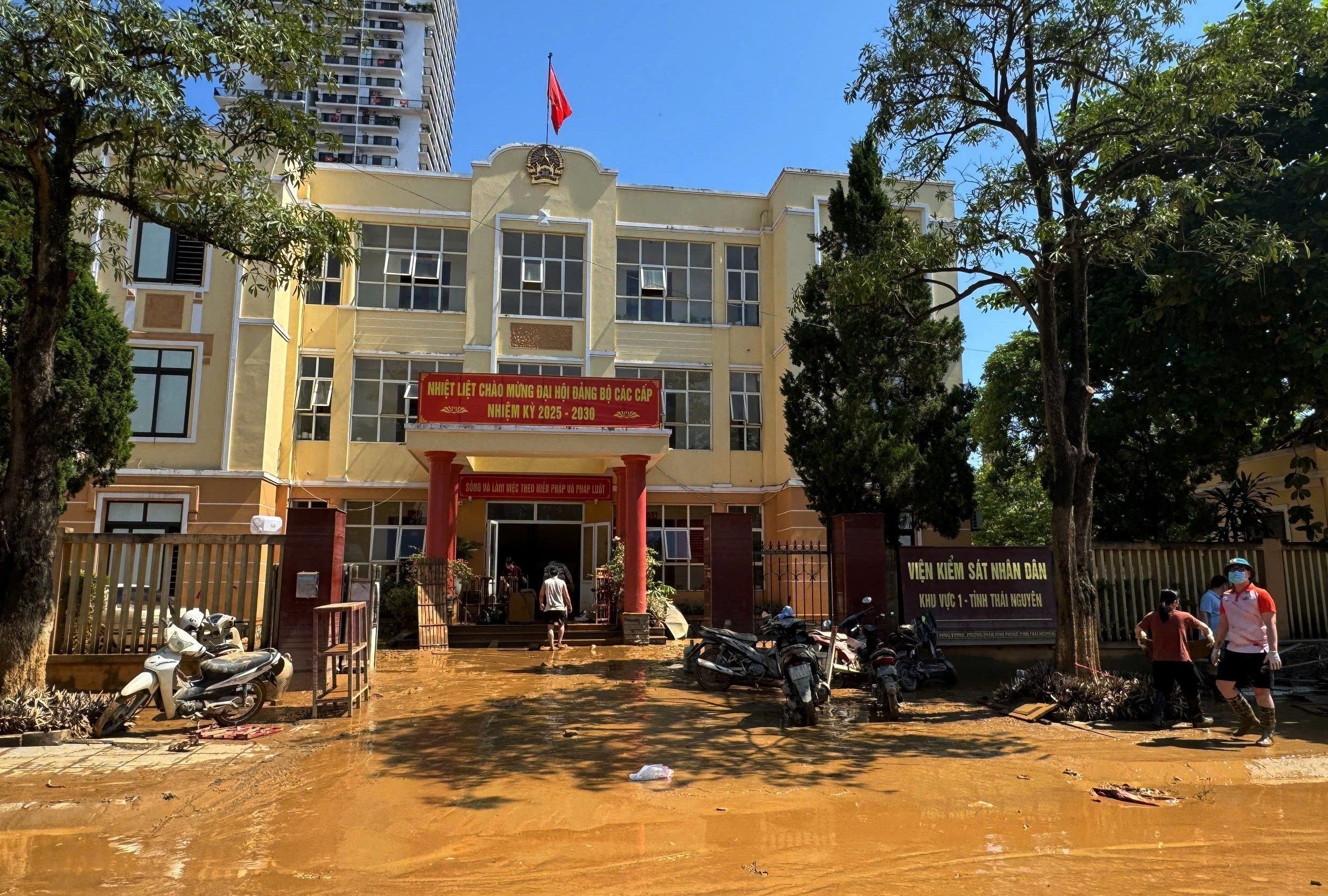 Đến trưa 9/10/2025, nước lũ đã dần rút khỏi trung tâm tỉnh Thái Nguyên, tuy vậy nhiều tuyến phố chính thuộc phường Phan Đình Phùng như: Lương Ngọc Quyến, Hoàng Văn Thụ, Bắc Nam, Minh Cầu…vẫn ngổn ngang đồ đạc, tài sản bị hư hại, bùn đất, chất thải… gây nguy cơ ô nhiễm môi trường. Việc khắc phục hậu quả sau lũ đòi hỏi mất nhiều công sức dọn dẹp, vệ sinh, khử khuẩn, đảm bảo môi trường an toàn.